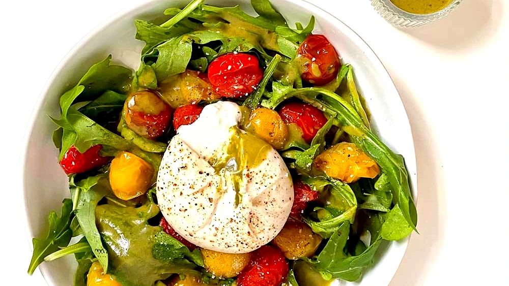 Pane toscano, pomodorini, aglio, basilico, paté di olive, 'nduja calabrese, stracciatella